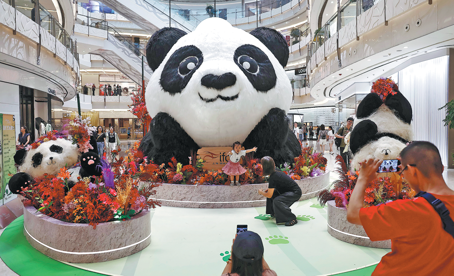 Посетители правят снимки на инсталация с панда в търговски център в Шанхай в събота. YIN LIQIN/КИТАЙСКА НОВИНАРСКА УСЛУГА