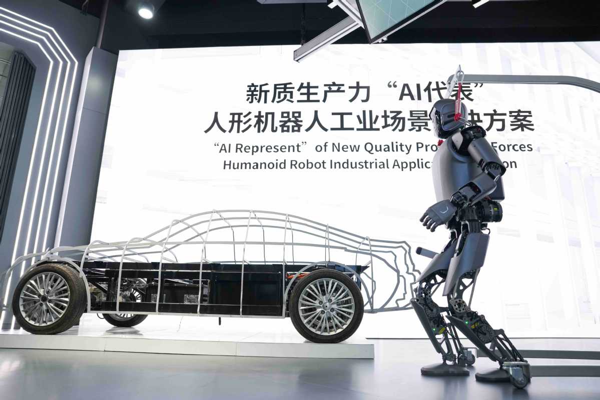 По време на скорошното изложение в Пекин е демонстрирано решение за индустриални приложения на хуманоидни роботи в Пекин. [Photo/Xinhua]