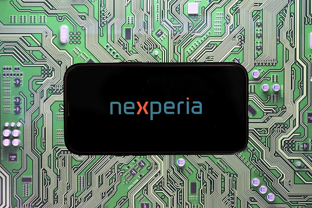 Тази снимка показва логото на Nexperia, показано на смартфон, в Брюксел на 3 ноември 2025 г. [Photo/VCG]