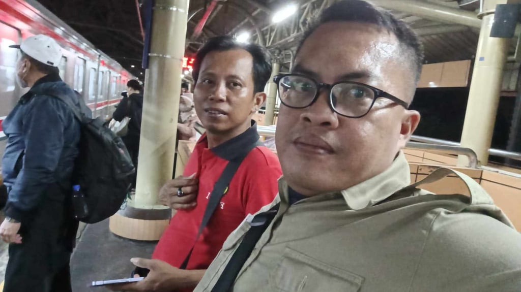 Дуи Аксан (вдясно) и Херман Сусанто на гара Чикини в Джакарта, преди да се качат на съдбовния влак. Снимка: Dwi AksanДуи Аксан (вдясно) и Херман Сусанто на гара Чикини в Джакарта, преди да се качат на съдбовния влак. Снимка: Dwi Aksan
