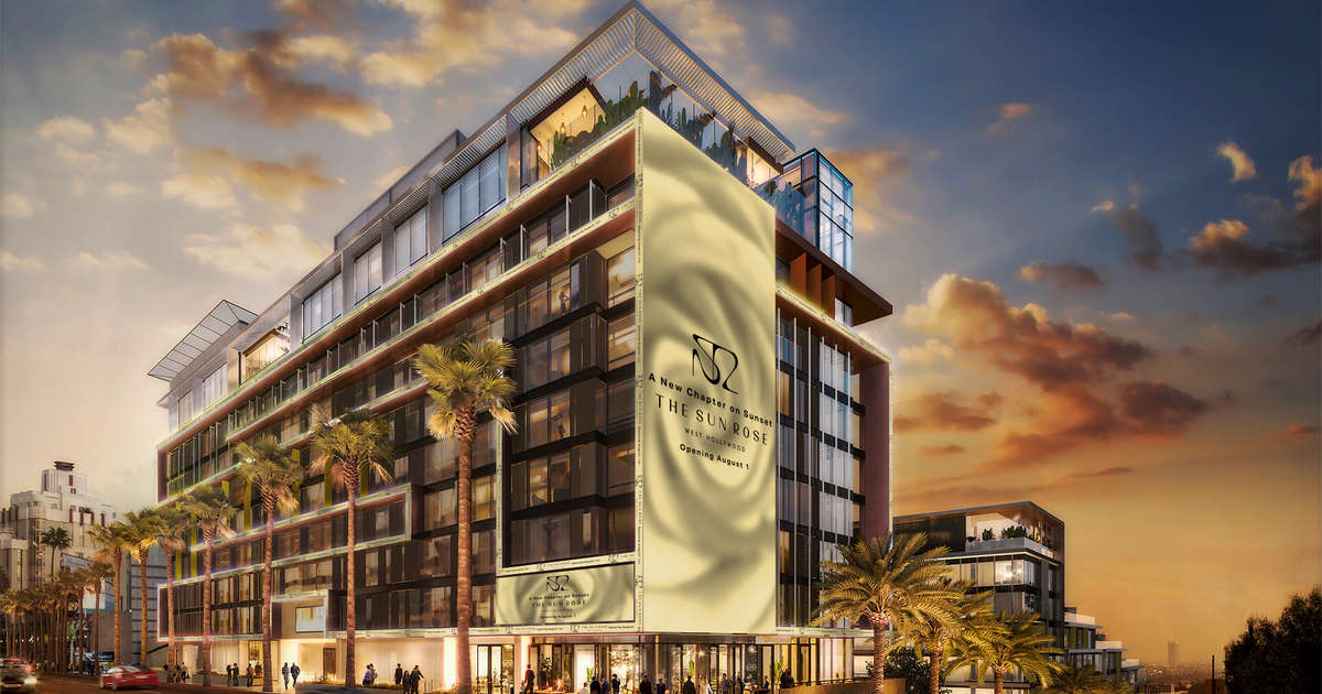 The 149-room luxury hotel at 8430 W Sunset Blvd has been reborn as The Sun Rose West Hollywood – a proud member of Preferred Hotels & Resorts’ L.V.X. Collection. Taking its name from the property’s beloved, jewel-box music venue, The Sun Rose honors its legendary past as the site of the original House of Blues and heralds a bold new chapter for this iconic Sunset Strip address.