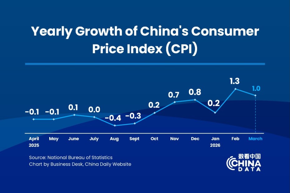 Индексът на потребителските цени в Китай, основен измерител на инфлацията, се повиши с 1% на годишна база през март, показват данни на Националното статистическо бюро в петък.