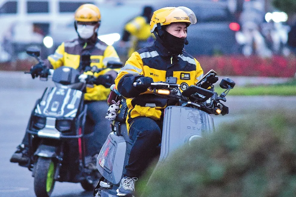 Служители на Meituan доставят поръчки в Шенян, провинция Ляонин, на 15 октомври. ЯН БО/ЗА КИТАЙ ДАЙЛИ