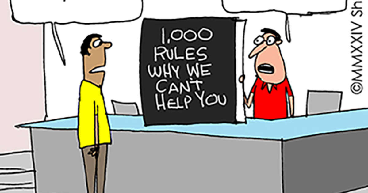 Any time you have rules and policies that “protect” the company, examine how they impact the customer experience. I’ve written about this before. Change the words rules or policies to “guidelines,” implying you can be guided but have some leeway.