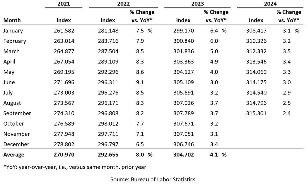 After slowing to the current low of 2.4% in September 2024 (versus September 2023), the improvement allowed the committee to start rate reductions with a 50-basis-point reduction occurring in September. Current conventional wisdom predicts an additional 25 to 50 basis-point reduction through the balance of 2024. Even though overall inflation nears the target level, hotel mortgage interest rates are likely to remain above pre-pandemic norms. Thus, hotel cap rates are also likely to stay above pre-pandemic norms.